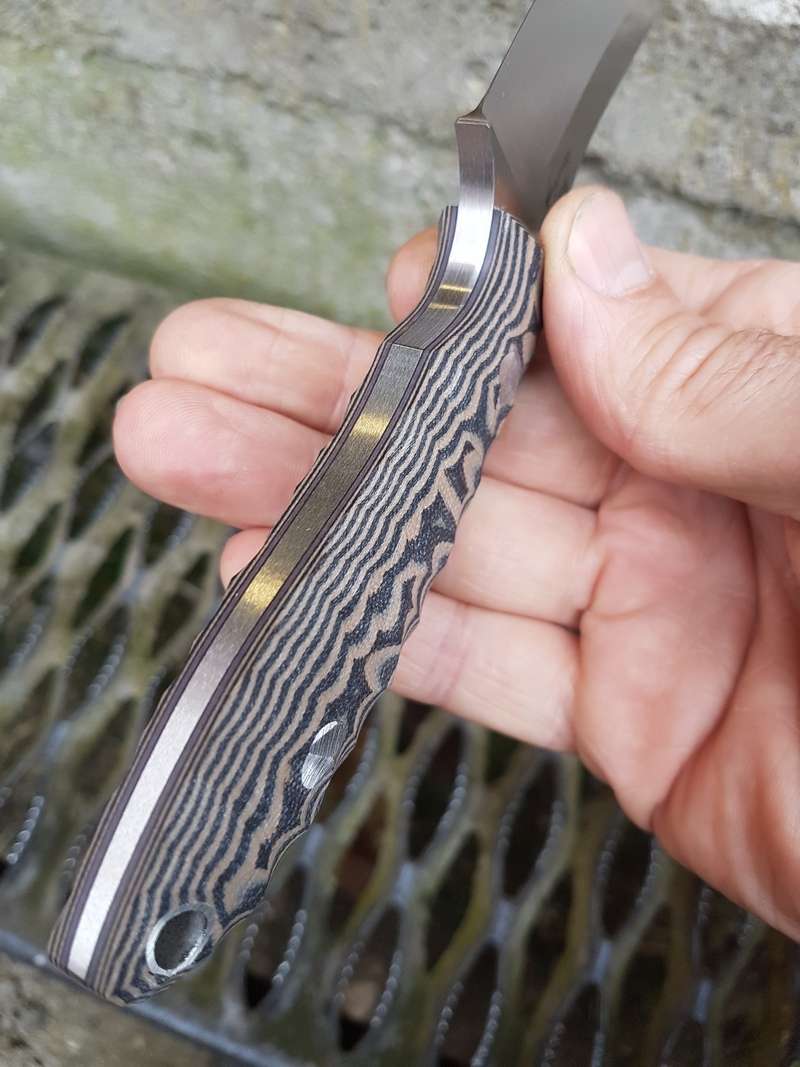 Price £320 - SOLD S30V Evo Stainthorp Knives Modified Evo model in CPM S30V and black/tan G10 Model: Evo Blade Length: 5" Overall Length: 9" Thickness: 5mm Steel: CPM S30V Handle: Black/Tan G10 Features: Stainless fixings, tapered tang, kydex sheath